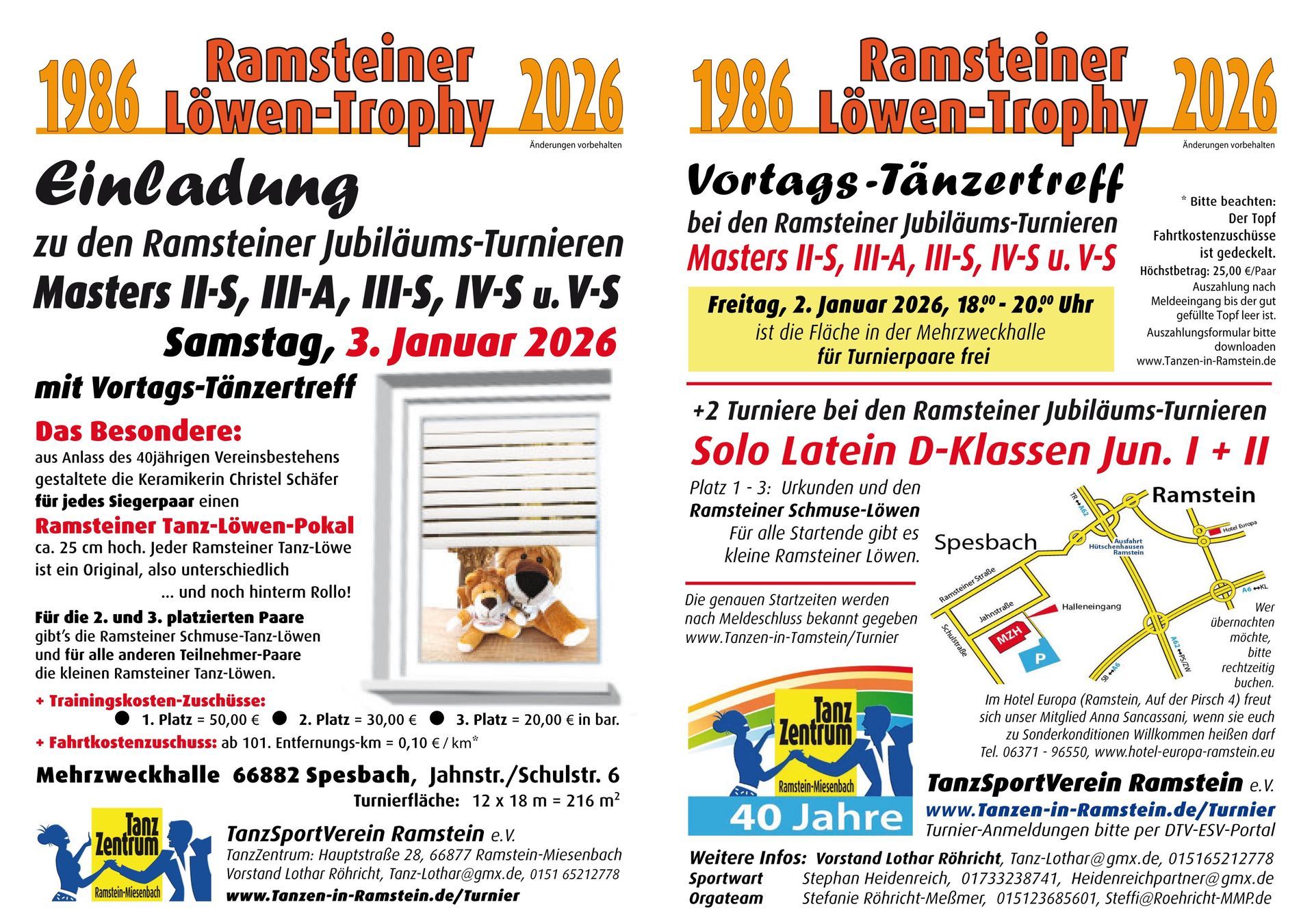 Wir werden uns riesig freuen, wenn viele Senioren-Paare uns ein ganz besonderes, großes Geburtstagsgeschenk mit dem Turnierstart bei der ersten Ramsteiner Löwen-Trophy am 3. Januar 2026 machen.